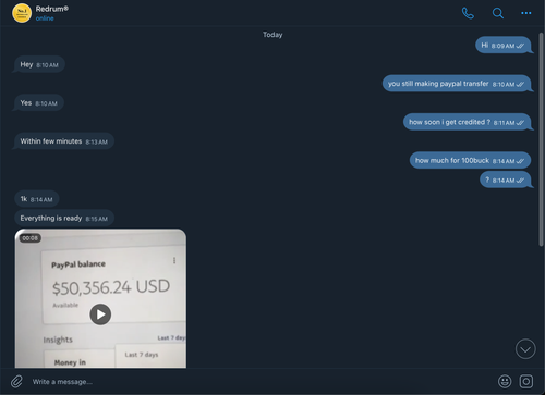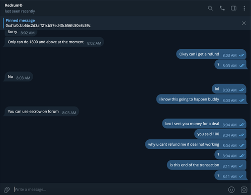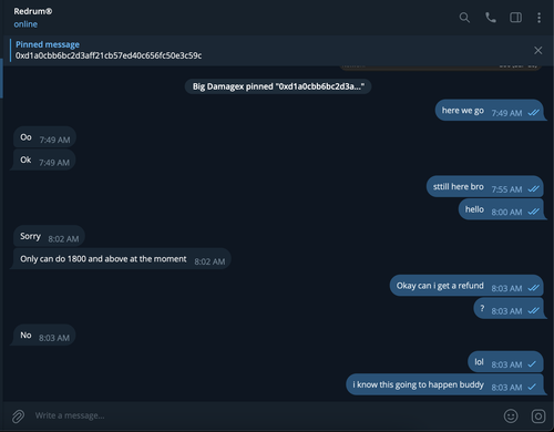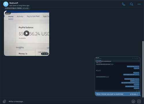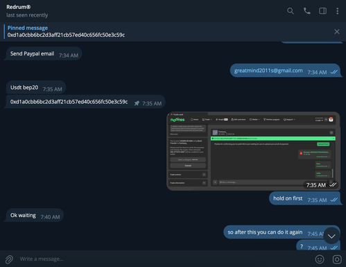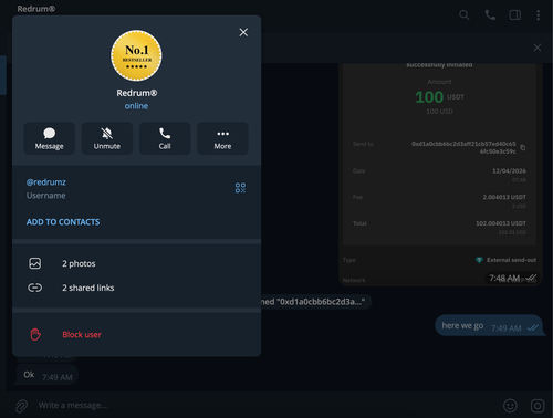 I got scammed by Telegram: @redrumz